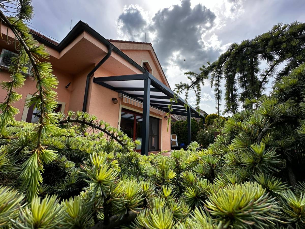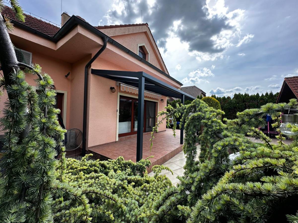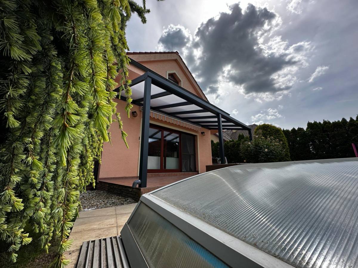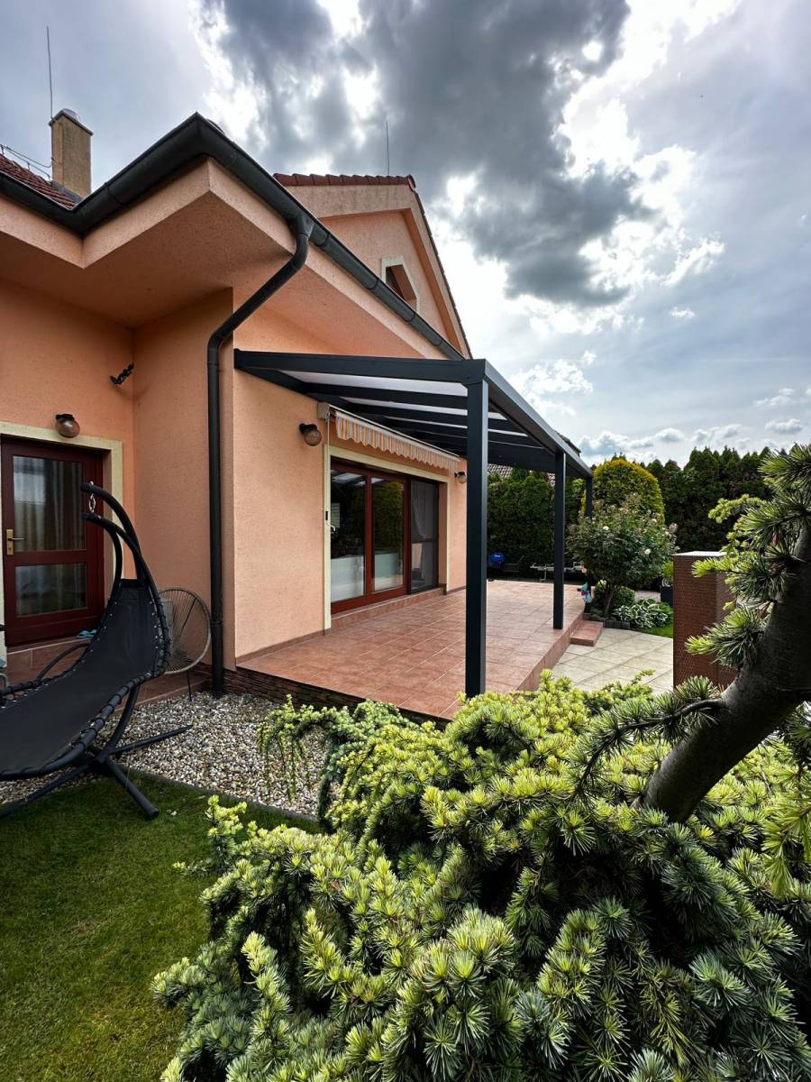 Na terase rodinného domu v Dunajskej Lužnej sme zrealizovali na mieru zastrešenie hliníkovou pergolou.